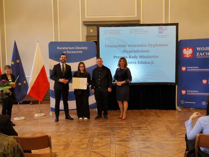 Maja Urbanowicz z klasy III TP oraz Marco Cannazzaro z klasy III B otrzymali stypendium Prezesa Rady Ministrów!🔥Uroczystość odbyła się w siedzibie Kuratorium Oświaty w Koszalinie w dniu 20.03.2026 r.🗓️